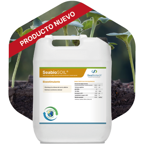 SeabioSOIL®, producto 100% extracto de alga Lessonia berteorana / Lessonia spicata de pH alcalino, provenientes de la costa norte de Chile, recolectada de forma sostenible y trazable.